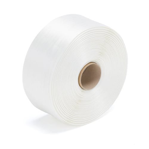 Mjukt och starkt band tillverkat av sammanlimmade polyestertrådar. För godsfixering och pallbandning. Används tillsammans med bandsträckare samt metallspännen.